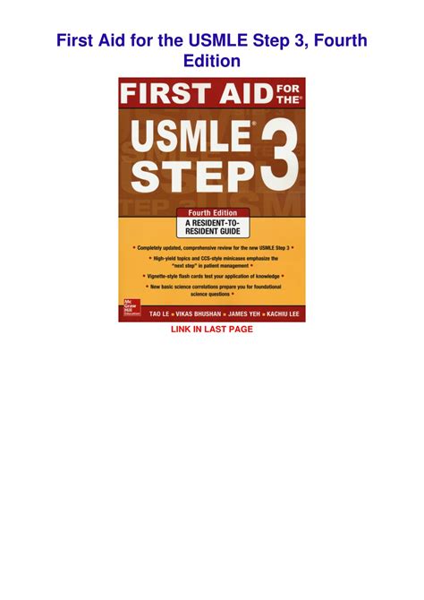 Read Online First Aid for the USMLE Step 3 Fourth Edition Reader online is a convenient and frugal way to read First Aid for the USMLE Step 3 Fourth Edition you love right from the comfort of your own home. Yes, there sites where you can get Reader "for free" but the ones listed below are clean from viruses and completely legal to use.